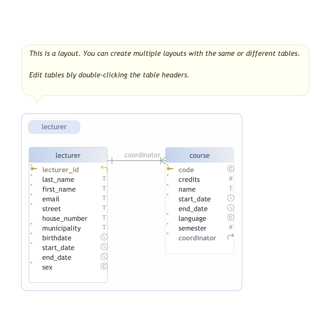 In the professional (paid) version of DBSchema, you can first design a model offline, save it, and only then synchronize it with the database. In the free version, a schema must first exist on the RDBMS and you cannot save the model offline. This is actually hardly an objection for the group project you get for this course, so we explain the second method.